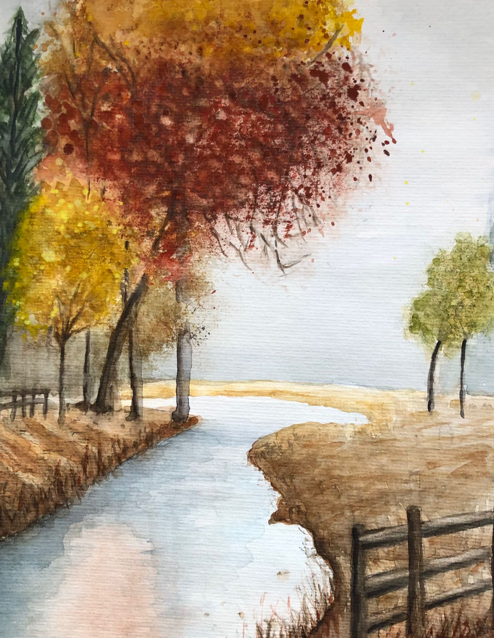 Na 20 jaar boetseren bij Nieneke Lamme was het tijd om iets anders te gaan doen. Ik boetseerde altijd menselijke figuren, vooral vrouwen, en nu ben ik begonnen met het schilderen van landschappen in aquarel.